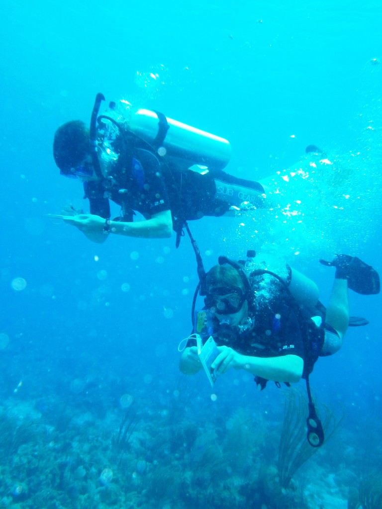 On the last day of diving, the Jesuit students participated in a reef check dive. A reef check dive is a dive that involves swimming along a guide line and tallying different