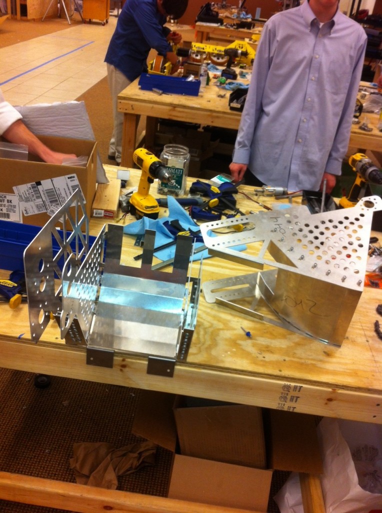 Led by club president Patrick Barone ’12 and two moderators, history teacher Mark Wester and math teacher Michael Couvillion, Team 2848 hopes to make a serious run at the FIRST (For the Inspiration and Recognition of Science and Technology) competition. But what exactly is the competition? In brief, teams must construct a machine that can secure a basketball and shoot it into a hoop (think robot basketball). For a full run down of rules and stipulations, see FIRST’s promo clip here.