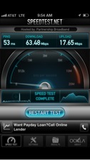 Take, for example, the ~4-5Mpbs internet speed at my house. LTE on my iPhone 5 will consistently get over 15Mbps download speeds in the Dallas/Ft. Worth metroplex. In fact, I one time even achieved 63Mbps download speed using LTE.