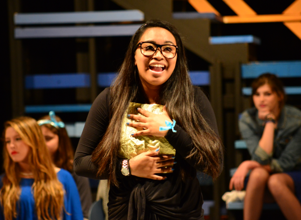 Then it was time for the finale, the first ever “Jesuit Musical Revue.” Set in a class room, the skit exhibited the life of high school students through musical renditions. The musical act hit all topics from students feeling Alone in the Universe, from Horton Hears a Who, to sharing My New Philosophy, from You’re a Good Man, Charlie Brown, two songs which I particularly enjoyed. I think the One Acts could be on to something with this new technique, but I believe it could use a little more comedy. For instance, I thought Kaitlin Reynders ’16, a Booker T. Washington student, did a fantastic job of adding some laughs in with her puppets. Ovearll, it was a great performance with some amazing voices.