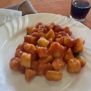 The food was very delicious. We had fresh pasta, pizza, gelato, and we even got to make our own gnocchi! We made our gnocchi by first putting our potato in the potato strainer, then we mix it with flour until it is completely smooth, and our hands have no flour. After, we roll them into thin strips and then we cut them to and shape them into little balls and put flour, so they don’t stick together. Our gnocchi were really tasty, and it was a fun experience. We had to provide for our own lunch, and we found really appetizing food. However, our dinner was provided by our travel company, World Strides. We picked from a set menu, and our dinners were very great with some days being more delectable than others.