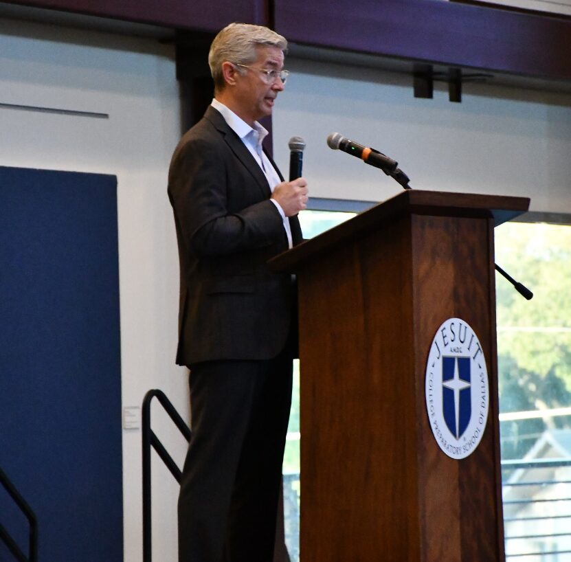 One of the father-son pairs in attendance at the breakfast was Levi Anderson ’28 and his father Brennen Anderson ’06. Levi reflected about how amazing it was to interact with his friends and their fathers who had attended Jesuit and how interesting it was to speak with someone who had been in his same position, a student of Jesuit Dallas. He also found it fascinating that even those who may have not been the most popular or academically successful while going to school at Jesuit were still making profound impacts on Jesuit. What resonated with Levi in particular after the event was the importance of acknowledging how everyone at Jesuit struggles to ensure that every student possesses what they need for success.