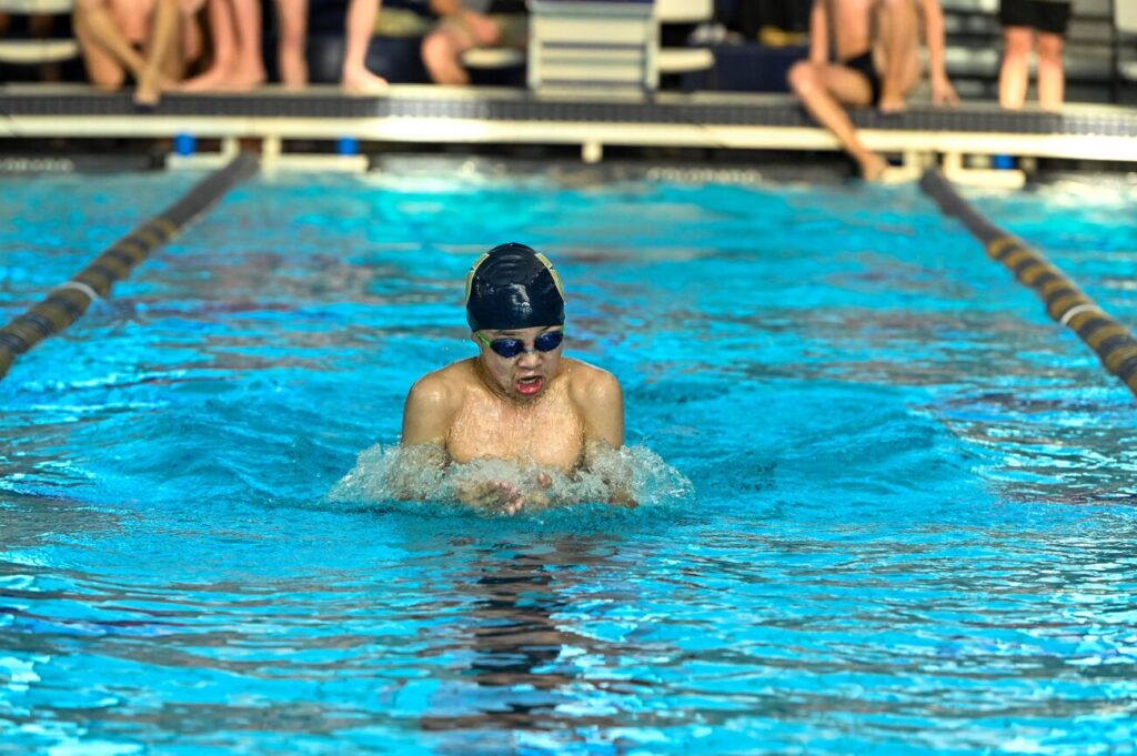 Out of the top eight spots in this event, the Rangers were able to take all but fifth place. Sam Kennington touched in first with a time of 21.87, and in second was Italian exchange student Riccardo Carotenuto, coming in at a 22.69. Luke Lary took third right behind him at a 22.74, and in fourth was Porter Pope with a 23.71. Out of the other Rangers entered in this event, several of them were able to achieve new personal best times. For example, Lucas Coloso ’28 was able to shave off an immense amount of time from a 26.36 to a 25.60, Bobby Blum ’29 dropped his time from a 27.04 to a 26.85, and Diego Sepulveda ’28 dropped a full three seconds from a 30.61 to a 27.61. Along with these three Rangers were many others who had phenomenal time drops.