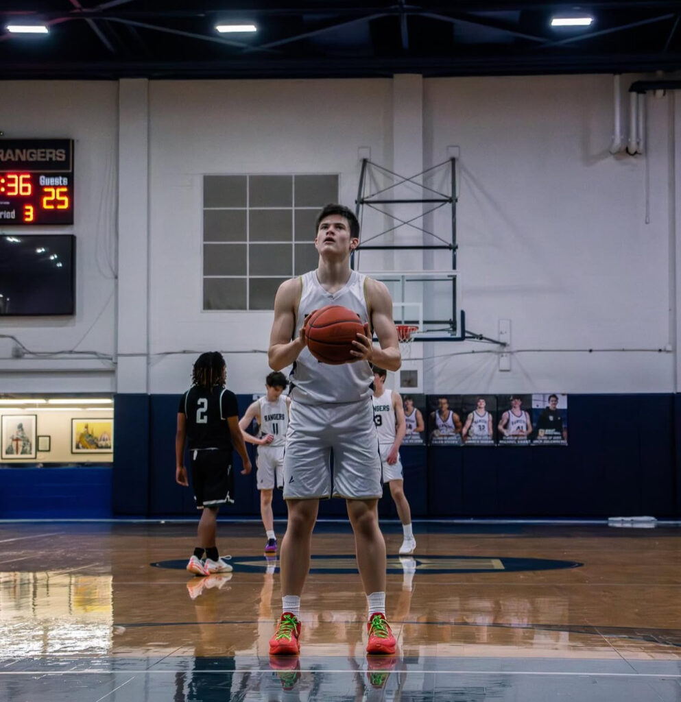 Jesuit guard Jacoby Kowal ’27 (#22) shoots a free throw during a Junior Varsity basketball game. Photo Credit: @_archer.media_ on Instagram