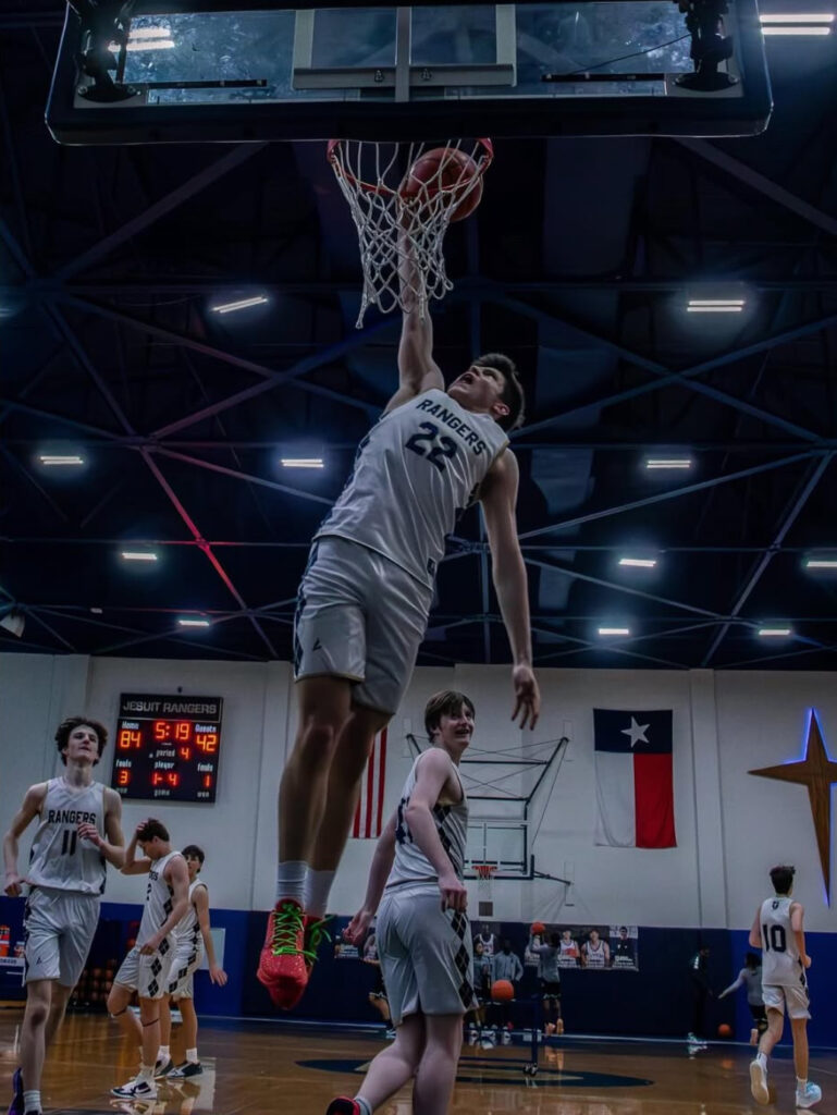 Jesuit Varsity Basketball Guard Andrew Eakes ’28, with six seconds remaining, hit two game-sealing free throws in overtime to all but seal the game for the Rangers in a 67-56 victory over Rowlett. It was the first game that the Rangers had won, after two failed attempts in which Jesuit lost by an average of 16 points. After starting the year 0-2, Jesuit has made a comeback to win four of their last five.