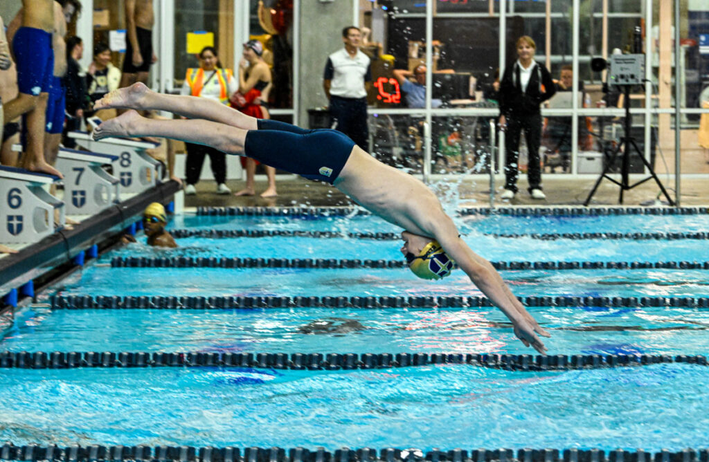 Kicking off the meet, Jesuit Diving made a clean entry into competition, no pun intended. Kobus Brewton ’28 won the event with a score of 139.55, not far off his personal best. In second was Strake Diver Anthony Schroer, scoring a 109.55. Rounding it up for the Rangers, Koen Mathys ’27 finished at an 81.50, and Nolan Talley ’29 finished at a 70.55. Additionally, Talley was scored at a 4.5 on his Inward Dive (401C), achieving his highest score all season. Despite the initial 53 points that Diving earned for team, Strake and Plano Senior proved challenging, coming into play during the swimming portion of the meet.
