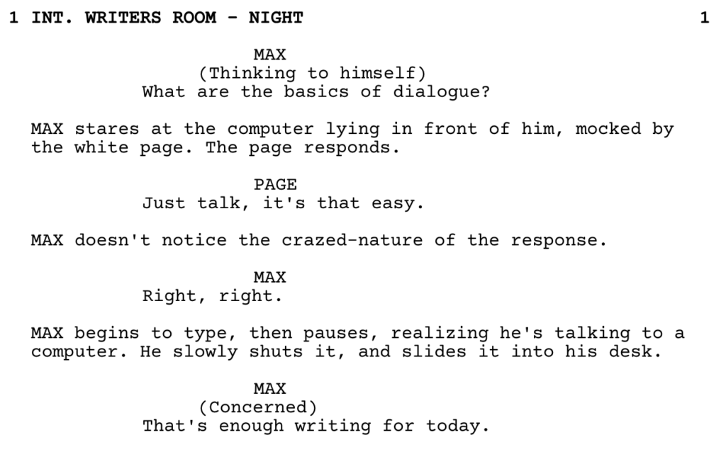 Dialogue, Dialogue, Dialogue. Dialogue is the difference between a silent film and a “talkie.” Well, duh, but you get the point. This is the rhythm of the script, but it is also the killer of audience attention. On one spectrum, interesting dialogue, like in scripts such as “12 Angry Men,” can be the soul of the show, and the main thing praised by critics. On the other end, too much dialogue that feels like “fluff,” especially in playwriting, becomes the moment where the audience notices how uncomfortable their chair is and when the most bathroom trips are prompted.