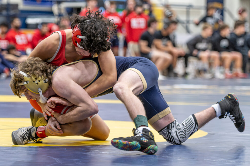 While the Dual Season started with an incredible outlook, several season-ending injuries took place, which debilitated integral members of the team, and forced either inexperienced wrestlers to take their place or shuffled veteran wrestlers out of their preferred weight class, leading to several unfortunate losses due to forfeits or huge weight gaps. Captain Luke Bloodworth ’26 suffered a season-ending ACL tear at practice at the start of the season, causing a devastating gap at 190 lbs. and forcing a first-year wrestler to take his place. Patrick Seefeldt-Tavares ’28 suffered leg breakage at a private session, causing a gap at 150 lbs. which several Varsity members had to fill. Nate Sabogal ’26 was plagued with several injuries all year, eventually leading to him being out for the end of the season and leaving a spot at 126 lbs. for Henry Hefner ’28 to fill.