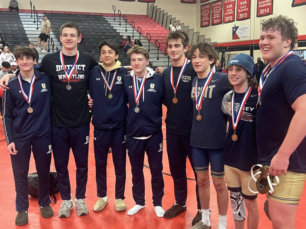 a quote which highlights the level of confidence the team has in itself. What happened at the district meet that propelled these great wrestlers forward? Jesuit placed fourth out of ten with a combined 140 points. Jesuit had one first place, two second places, three third places, and two fourth places. The team rankings are Rockwall Heath in first with 259 points followed by Rockwall, who had six first place finishers, Lake Highlands, Jesuit, Pearce, Richardson, Mesquite, Mesquite Horn, Berkner, and Skyline.
