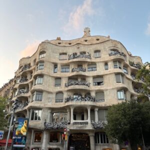 In one of his most famous buildings, Casa Batllo, Gaudi designs an extravagant house taking inspiration from the Mediterranean Sea for an aquatic themed building. In fact, Gaudi primarily took inspiration from nature to design his revolutionary buildings. In another one of his works, the apartment building La Pedrera (also known as Casa Mila), Gaudi built a structure with a stony wavy facade like a mountain and with famous cast-iron railings. The building got the name La Pedrera because it looked like a stone quarry and was initially very unpopular with the locals. In his work Casa Vicens, Gaudi experimented with flamboyant oriental styles to create one of the first somewhat modern houses. Gaudi also helped to design a park called Park Guell which is an excellent outdoor space full of whimsical structures, beautiful views of Barcelona, and wonderful plant life. The park is popular with both tourist and locals. His most famous work though, was La Sagrada Familia Basilica which I will talk about later.