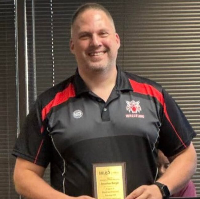Beyond teaching, Mr. Barger also coaches wrestling at Jesuit. Having wrestled for most of his life and into college, he approached coaching with the same stance as teaching. He strives to improve students and athletes with the knowledge he gained. He coached at the schools before Jesuit, meeting many athletes that he was able to help improve. Recently, he had a student, Kingston Stephens, reach the state finals in wrestling, who ended as the runner up.